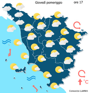 Cielo: generalmente nuvoloso, molto nuvoloso sulle zone centro-settentrionali per nubi basse. Possibili inconsistenti pioviggini di breve durata.